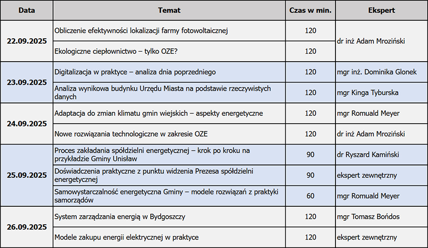Mamy nadzieję, że udział w zaproponowanych wydarzeniach przełoży się m.in. na oraz rozwój lokalnych społeczności energetycznych, efektywniejsze planowanie i realizację inwestycji, w tym OZE.